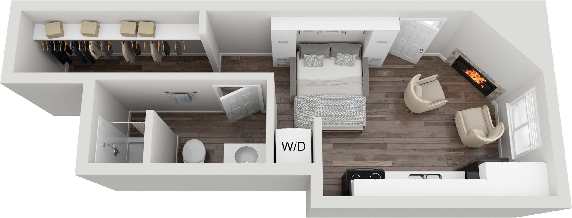 Lakeside Place is conveniently located minutes from downtown Bend. This unique property offers thoughtfully designed studio apartment homes featuring fireplaces in every unit, as well as a washer and dryer, microwave, refrigerator, and range. Most units also include a murphy bed to maximize your living space. Residents can enjoy amenities such as a fitness center, clubhouse, covered bicycle parking, and a community firepit area for those beautiful Bend evenings. Come see for yourself what Lakeside has to offer!